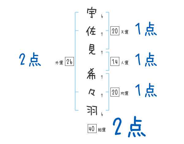 外運![]() | 宇佐見希々羽さんの外運は26画の2つ星!波瀾万丈かも。信頼できる人を大事にしましょう。 生活面を象徴する運勢です。外部から受ける影響力を表し、結婚運、家庭運や職場、環境への順応性を表します。 |