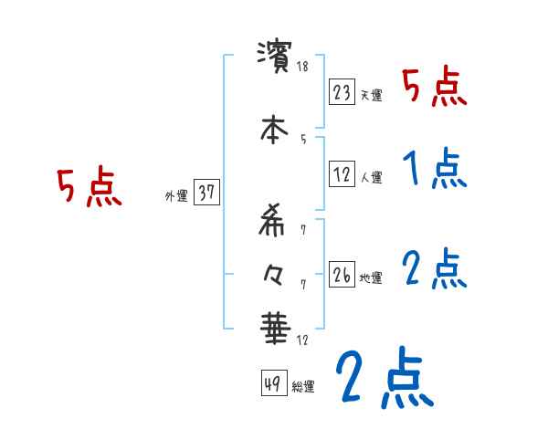 天運![]() | 濱本希々華さんの天運は23画の5つ星!想像力に優れ活力がある。一代で成功し名誉を手に入れる。 家系が持つ宿命的な運勢を表します。祖先から受け継いだ苗字ですので自分の力が及びません。家柄を象徴します。 |