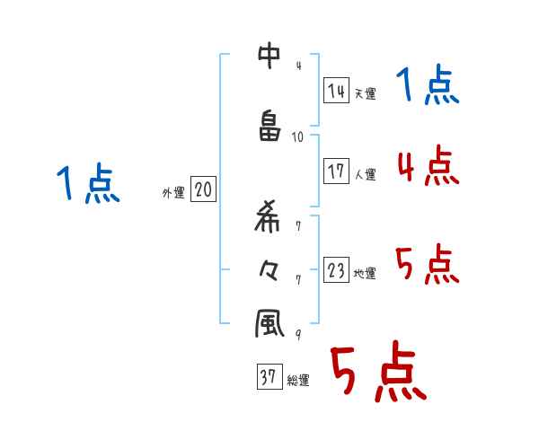 総運![]() | 中畠希々風さんの総運は37画の5つ星!努力家で順応性に優れる。現実的な考え方ができ忠実に物事をこなす。 あなたの人生を表す1番重要な運勢です。生涯を通じて影響する総合運となり、主に50歳以降の晩年期に影響を及ぼします。 |
