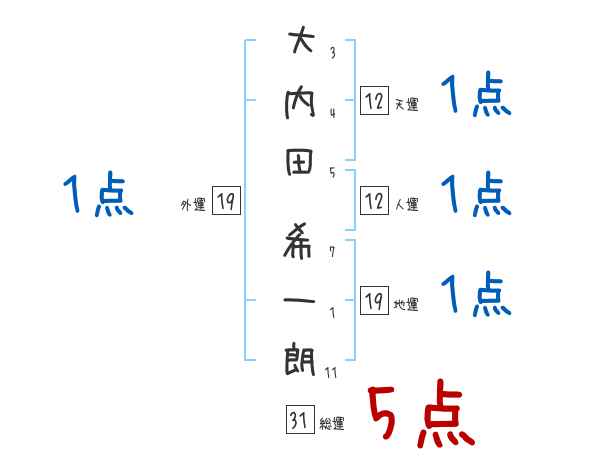 外運![]() | 大内田希一朗さんの外運は19画の1つ星!優れた才能を持ちますが、協調性が足りないことも。周りの人と協力する事を意識しましょう。 生活面を象徴する運勢です。外部から受ける影響力を表し、結婚運、家庭運や職場、環境への順応性を表します。 |