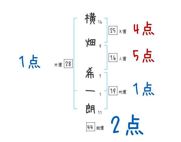 横畑希一朗さんの画数の鑑定結果
