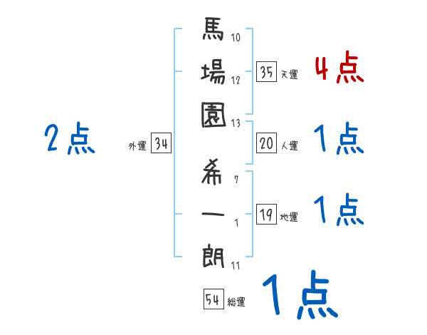 馬場園希一朗さんの画数の鑑定結果
