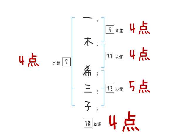 天運![]() | 一木希三子さんの天運は5画の4つ星!健康で安泰。協調性に優れ、財産に恵まれる。 家系が持つ宿命的な運勢を表します。祖先から受け継いだ苗字ですので自分の力が及びません。家柄を象徴します。 |