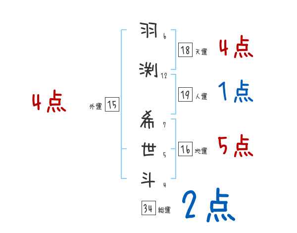 外運![]() | 羽渕希世斗さんの外運は15画の4つ星!人徳があり出世する。順調に物事を進め円満な人生。 生活面を象徴する運勢です。外部から受ける影響力を表し、結婚運、家庭運や職場、環境への順応性を表します。 |