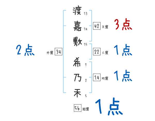 渡嘉敷希乃禾さんの画数の鑑定結果