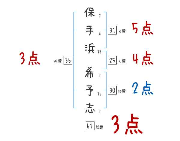 保手浜希予志さんの画数の鑑定結果