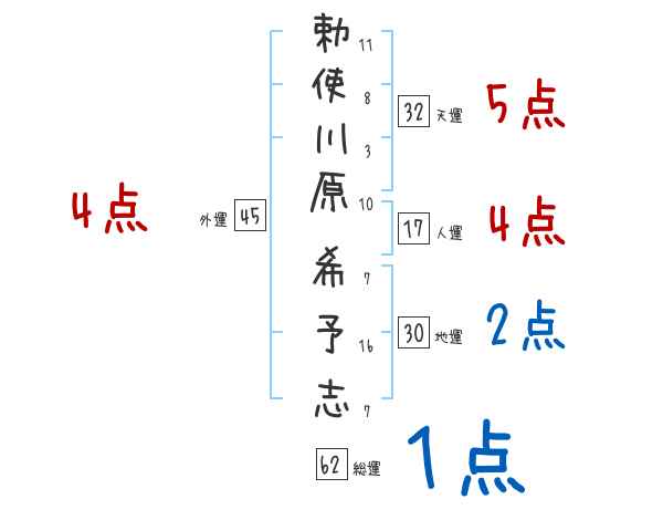 勅使川原希予志さんの画数の鑑定結果