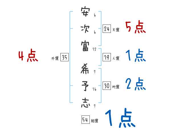 安次富希予志さんの画数の鑑定結果