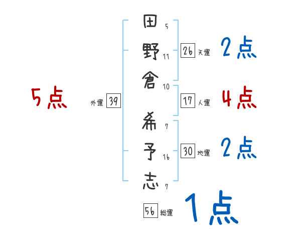 田野倉希予志さんの画数の鑑定結果