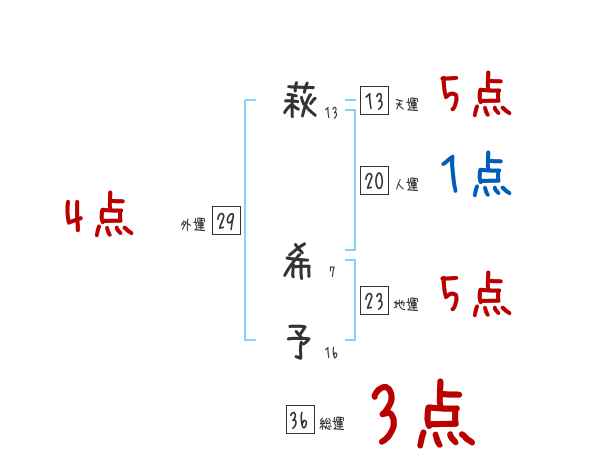 萩希予さんの画数の鑑定結果