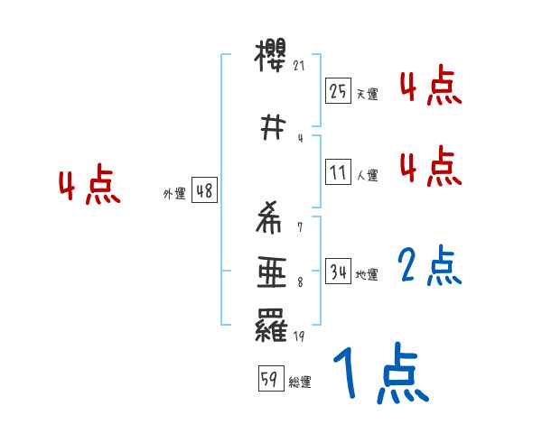櫻井希亜羅さんの画数の鑑定結果