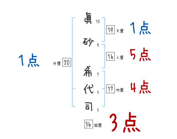 総運![]() | 眞砂希代司さんの総運は36画の3つ星!先見性が豊かです。多少神経質で苦労することも。 あなたの人生を表す1番重要な運勢です。生涯を通じて影響する総合運となり、主に50歳以降の晩年期に影響を及ぼします。 |