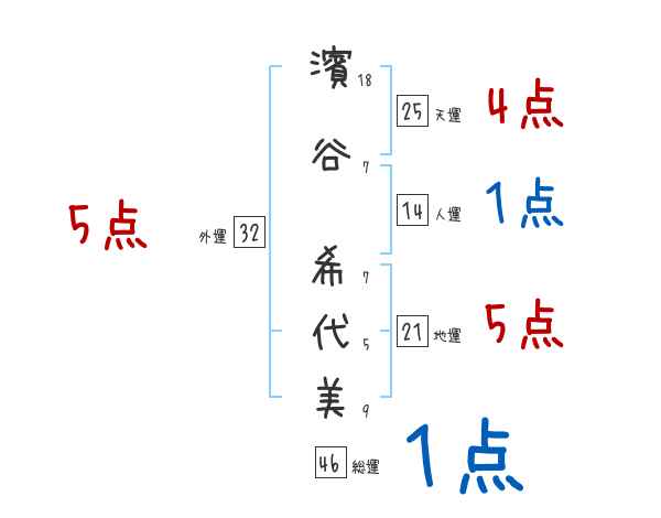 濱谷希代美さんの画数の鑑定結果