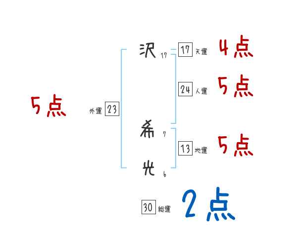 沢希光さんの画数の鑑定結果