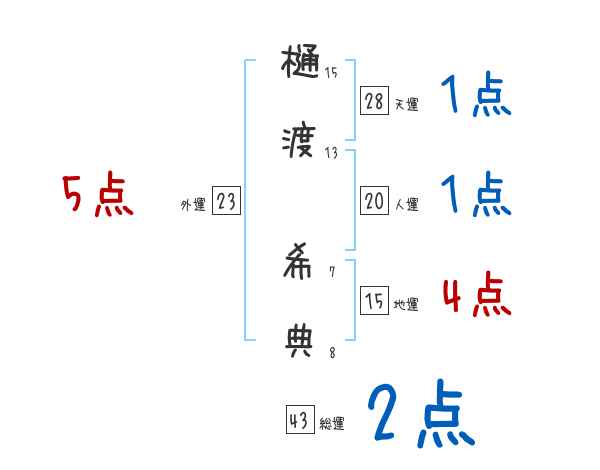 樋渡希典さんの画数の鑑定結果