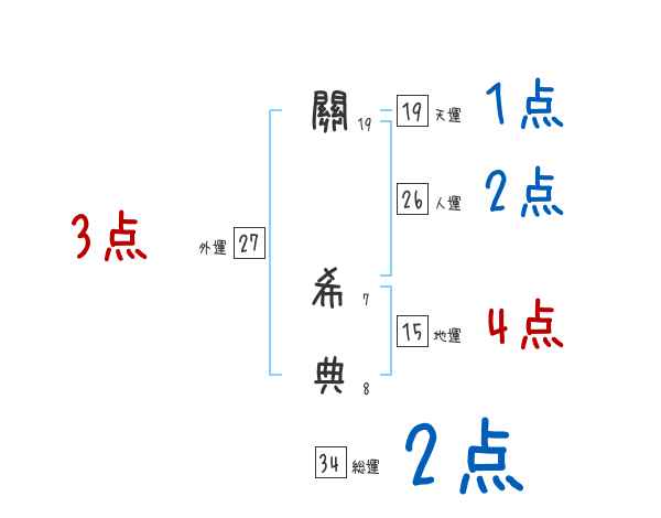 關希典さんの画数の鑑定結果