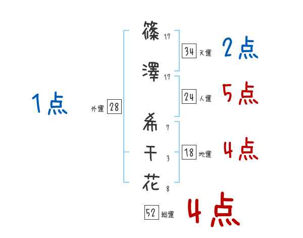 篠澤希千花さんの画数の鑑定結果