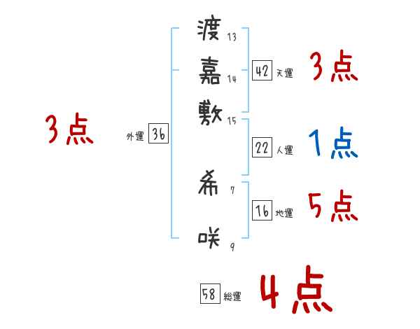 地運![]() | 渡嘉敷希咲さんの地運は16画の5つ星!人望が厚く大きく発展する。逆転成功が見える。 個性を表す基礎的な運勢です。性格形成や対人関係、行動力など家庭環境に影響されます。主に誕生してから20歳くらいまでの若年期の運勢を表します。 |