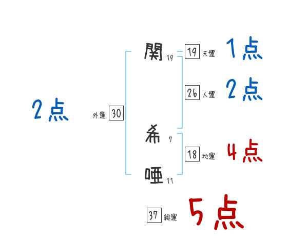 天運![]() | 関希唖さんの天運は19画の1つ星!優れた才能を持ちますが、協調性が足りないことも。周りの人と協力する事を意識しましょう。 家系が持つ宿命的な運勢を表します。祖先から受け継いだ苗字ですので自分の力が及びません。家柄を象徴します。 |