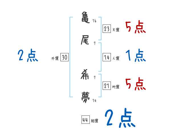 亀尾希夢さんの画数の鑑定結果