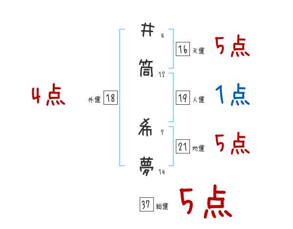 井筒希夢さんの画数の鑑定結果