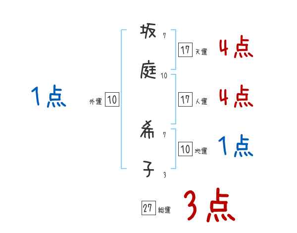 坂庭希子さんの画数の鑑定結果
