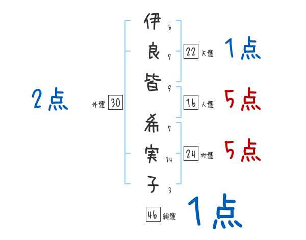 人運![]() | 伊良皆希実子さんの人運は16画の5つ星!人望が厚く大きく発展する。逆転成功が見える。 性格や才能などを表す2番目に重要な運勢です。人間関係や協調性、社会的な成功に影響します。主に20歳から50歳ぐらいまでの中年期の運勢を表します。 |
