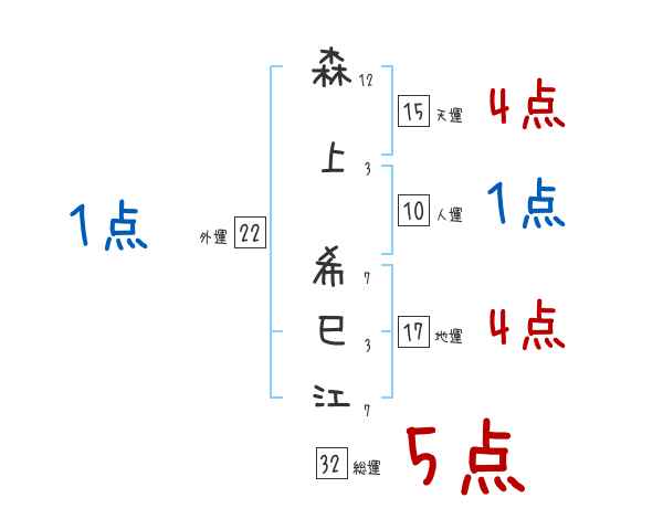 総運![]() | 森上希巳江さんの総運は32画の5つ星!柔軟性があり成功する。チャンスが多く金運が良い。 あなたの人生を表す1番重要な運勢です。生涯を通じて影響する総合運となり、主に50歳以降の晩年期に影響を及ぼします。 |