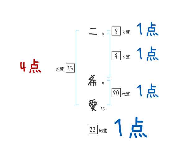 二希愛さんの画数の鑑定結果