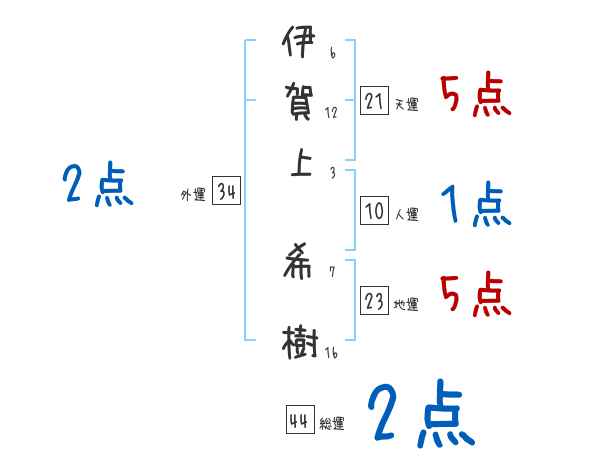 伊賀上希樹さんの画数の鑑定結果
