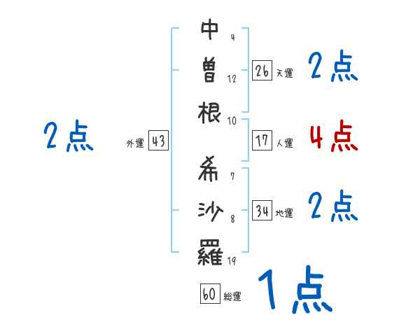 中曽根希沙羅さんの画数の鑑定結果