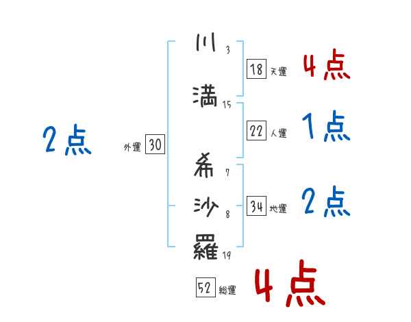地運![]() | 川満希沙羅さんの地運は34画の2つ星!独創性に優れるが、自尊心が強く災難に注意しましょう。 個性を表す基礎的な運勢です。性格形成や対人関係、行動力など家庭環境に影響されます。主に誕生してから20歳くらいまでの若年期の運勢を表します。 |