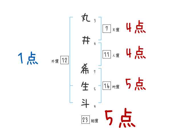 丸井希生斗さんの画数の鑑定結果