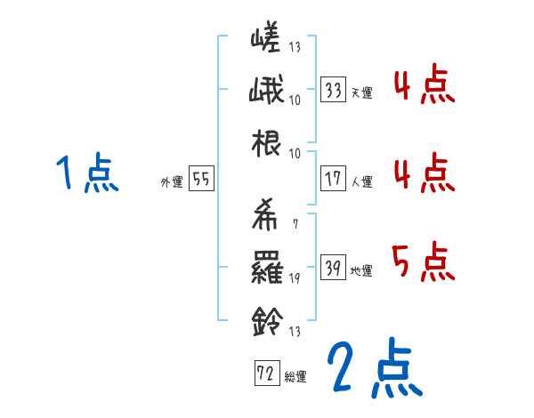嵯峨根希羅鈴さんの画数の鑑定結果