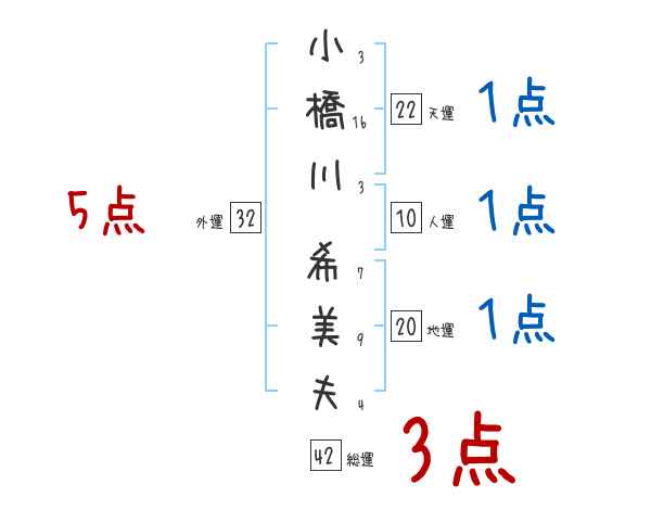 小橋川希美夫さんの画数の鑑定結果