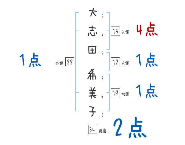 大志田希美子さんの画数の鑑定結果