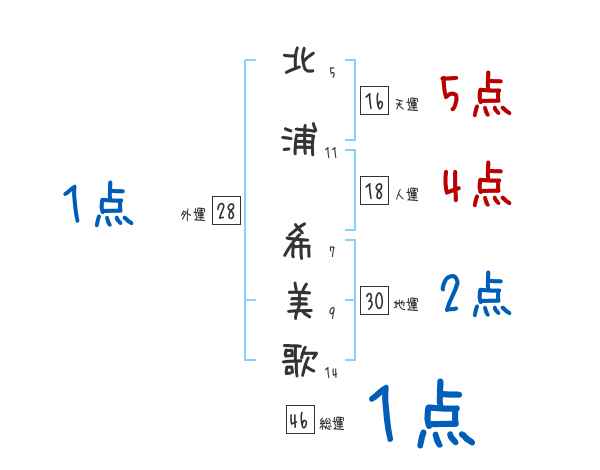 天運![]() | 北浦希美歌さんの天運は16画の5つ星!人望が厚く大きく発展する。逆転成功が見える。 家系が持つ宿命的な運勢を表します。祖先から受け継いだ苗字ですので自分の力が及びません。家柄を象徴します。 |