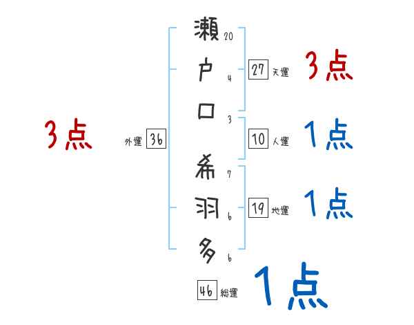 瀬戸口希羽多さんの画数の鑑定結果