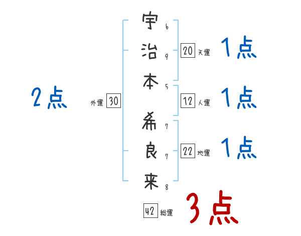 宇治本希良来さんの画数の鑑定結果