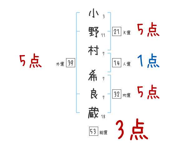 小野村希良蔵さんの画数の鑑定結果