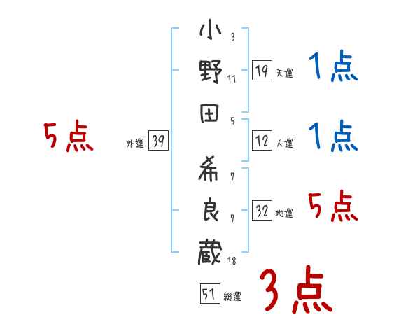 小野田希良蔵さんの画数の鑑定結果