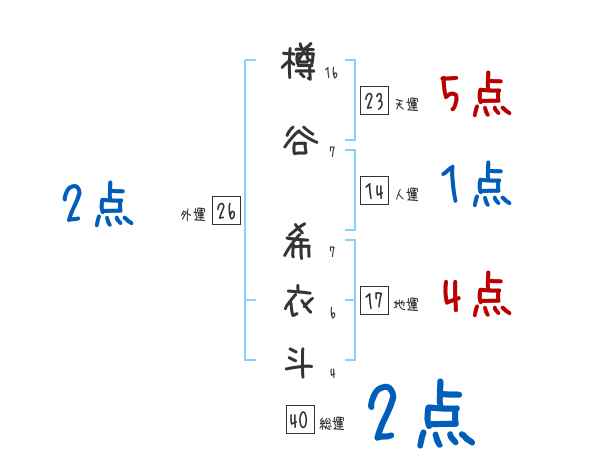 樽谷希衣斗さんの画数の鑑定結果