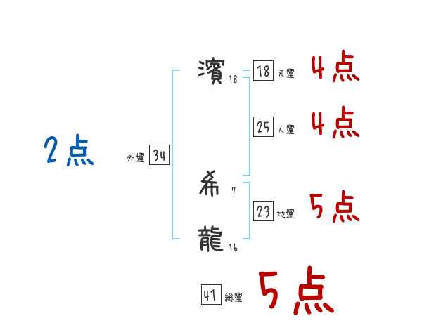 天運![]() | 濱希龍さんの天運は18画の4つ星!情熱的で剛気。忍耐力があり信頼される。 家系が持つ宿命的な運勢を表します。祖先から受け継いだ苗字ですので自分の力が及びません。家柄を象徴します。 |