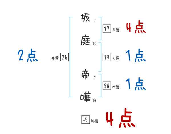 坂庭帝嘩さんの画数の鑑定結果