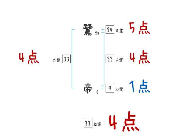 鷺帝さんの画数の鑑定結果