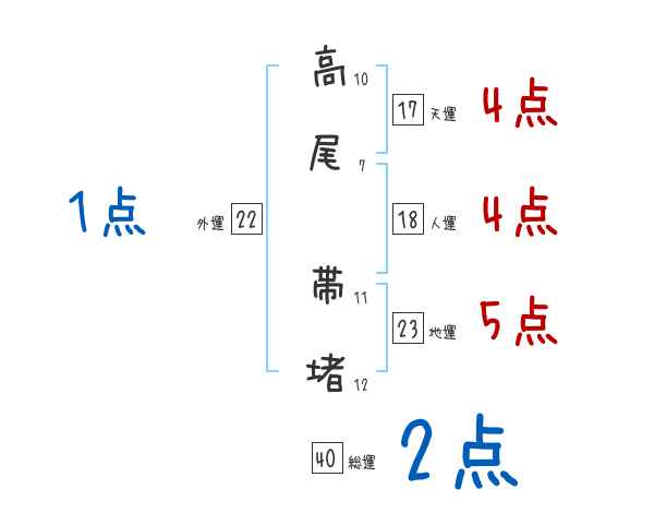 高尾帯堵さんの画数の鑑定結果