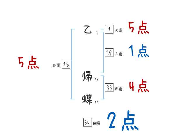 天運![]() | 乙帰蝶さんの天運は1画の5つ星!行動力、指導力があり出世し繁栄する。幸運に恵まれる。 家系が持つ宿命的な運勢を表します。祖先から受け継いだ苗字ですので自分の力が及びません。家柄を象徴します。 |