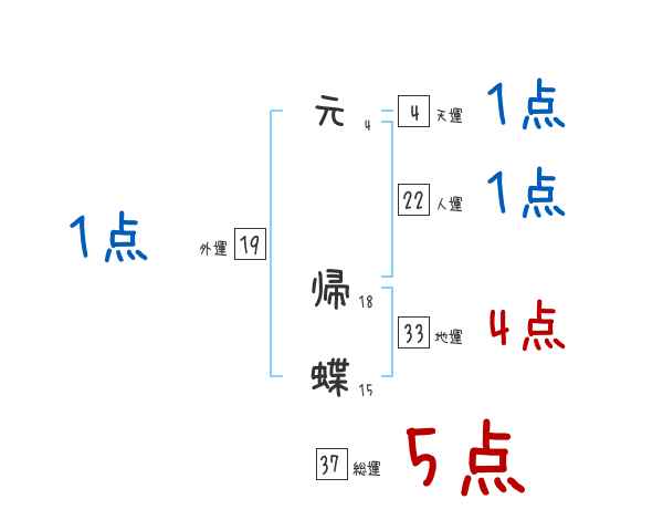 元帰蝶さんの画数の鑑定結果