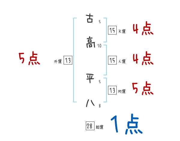 古高平八さんの画数の鑑定結果
