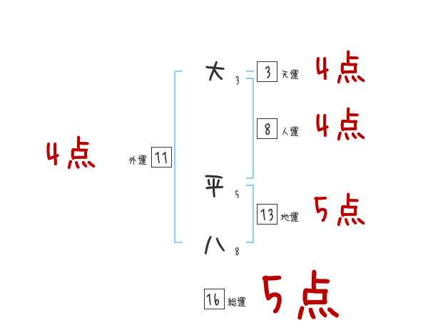 大平八さんの画数の鑑定結果